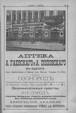 И это подтверждалось документально: «За последние 15 лет в Одессе выдали 12 новых привилегий на аптеки, а аптечных магазинов стало там великое множество. Но мое дело от этого не ухудшилось: вместо прежних 50 нумеров рецептов в день я теперь имею до 100 нумеров. Это показывает, что стоит только зарекомендовать себя и приобрести доверие публики в том, что дело ведется хорошо, и никакая конкуренция не будет опасной. Заведись в Одессе около меня хоть еще 50 аптекарских магазинов – мне все равно…», - пишет Поповский. Что ж, компаньон Гаевского имел правильные представления о ведении бизнеса и адекватно реагировал на растущую конкуренцию.